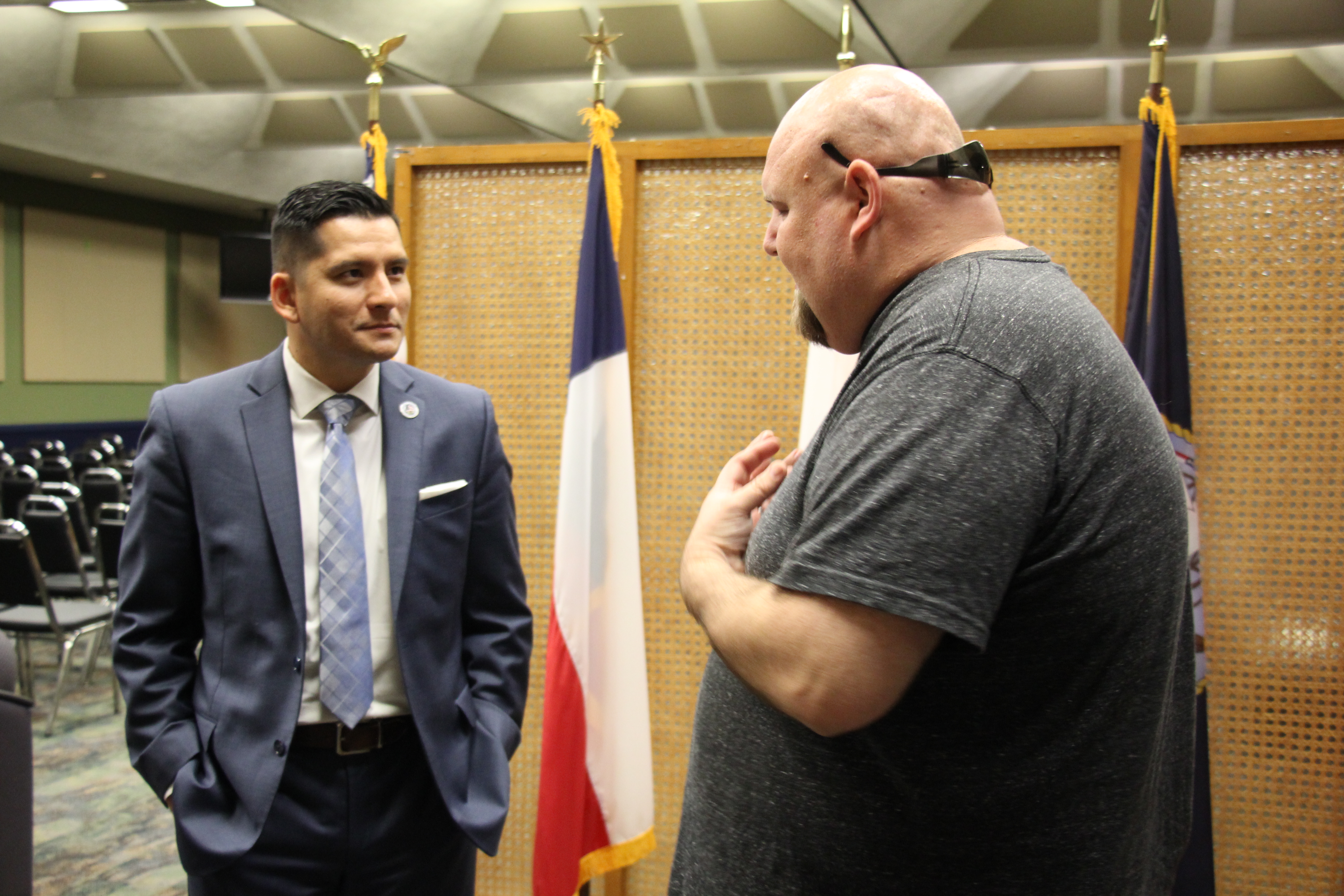 On Nov. 10 at the Center for Economic Development, Army Veteran Jose Olivares, owner of Tejas Cable Construction, spoke to veterans during a luncheon.
