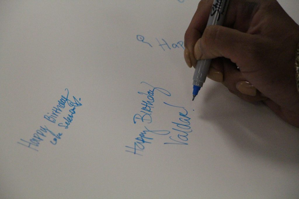 Students and staff were able to sign Valdar’s birthday card with words of encouragement.