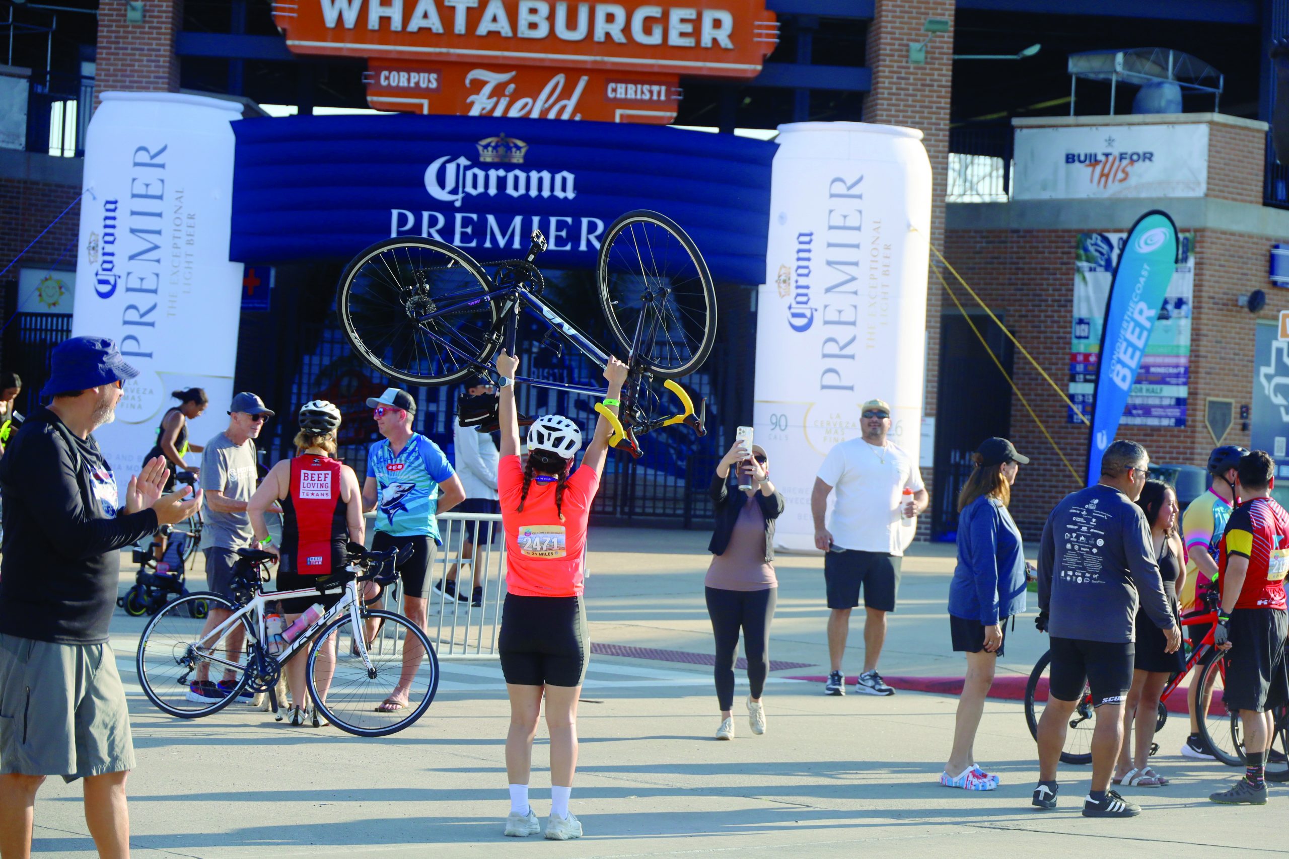 The 69-mile course takes the rider over the Harbor Bridge and all the way to Port Aransas, where they take the ferry to Mustang Island, over the JFK Causeway, and to the finish line at Whataburger Field. This year was the first time the event has crossed the new Harbor Bridge, which opened on June 28.
