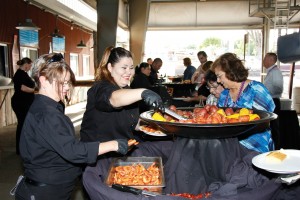 Arlynn Surface (left) and Vanessa Martinez, both from Diamond Point Catering, serve crawfish, shrimp, potatoes, corn and more at Bernie’s Famous Crawfish Boil. More than 250 pounds of crawfish was served with fixings and, if anyone could handle it, spices and hot sauce to heat it up.
