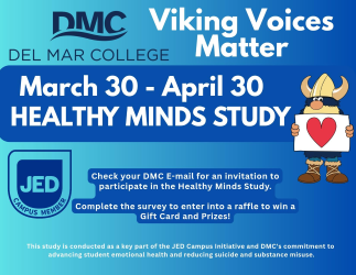 Del Mar students have a chance to participate in a mental health survey to help further research and strengthen programs to help student mental health. The Healthy Mind Study is the largest survey of college student mental health in the United States. Once completed, the survey will allow Del Mar College to compare student data from more than 450 campuses nationwide. The survey is being offered as part of the school’s JED Campus Program. The survey launched on March 30 and closes April 30. The JED Campus is a four-year partnership between The Jed Foundation and Del Mar College. Through…