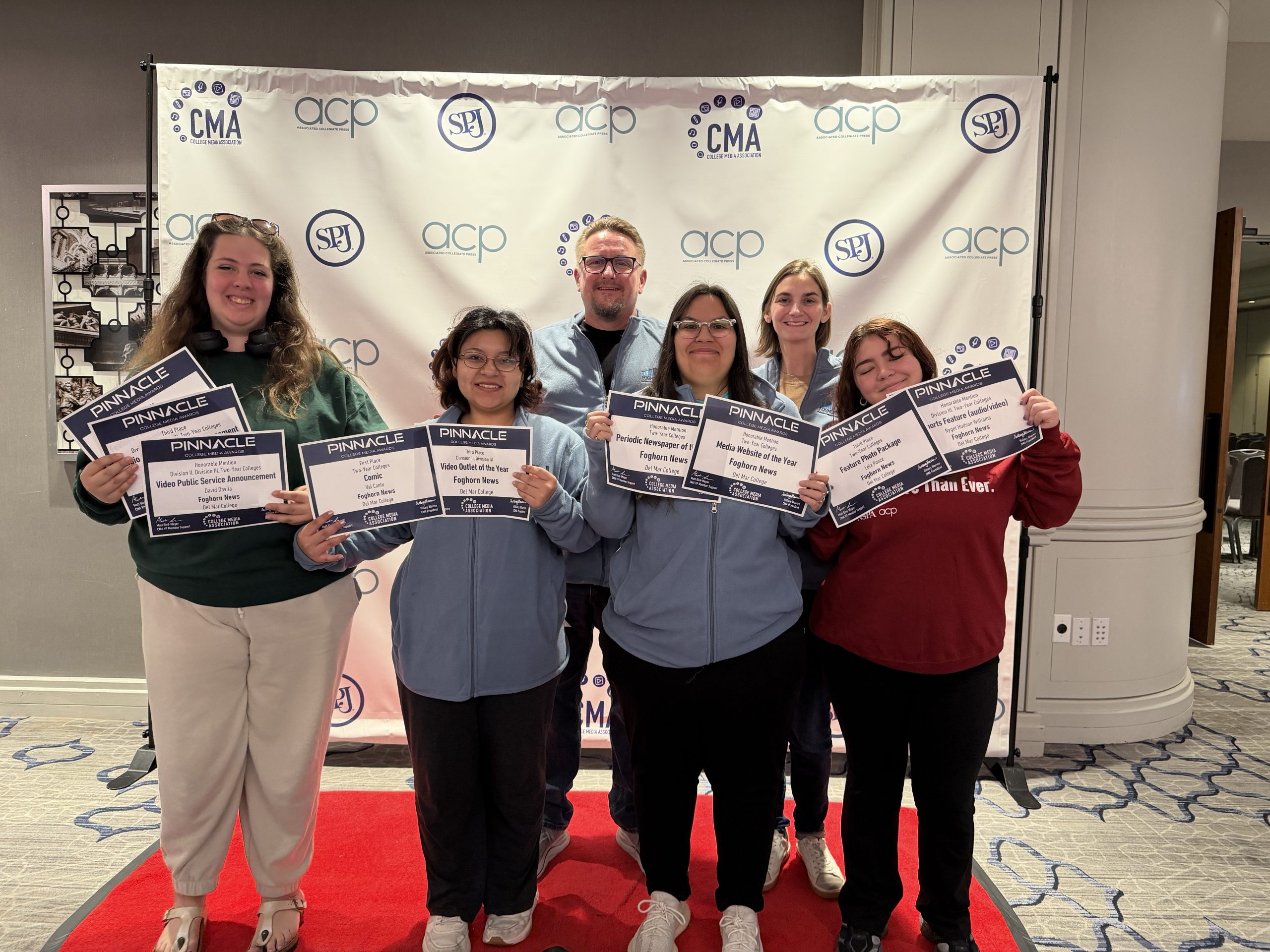 The Foghorn snagged 26 CMA Pinnacle awards, including first place awards in breaking news photo, video newscast, feature video package and comics, and a first place Best in Show advertisement. Both current and former Foghorn staff snagged wins. Former Online Editor Haylie Godoy won first place for breaking news photo, second place for general news story, and honorable mentions for general news photo and news photo package.