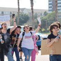 King students walked from Mustang Trail to South Staples Street near South Padre Island Drive outside of La Palmera Mall, holding hand-lettered protest signs as cars honked in solidarity.