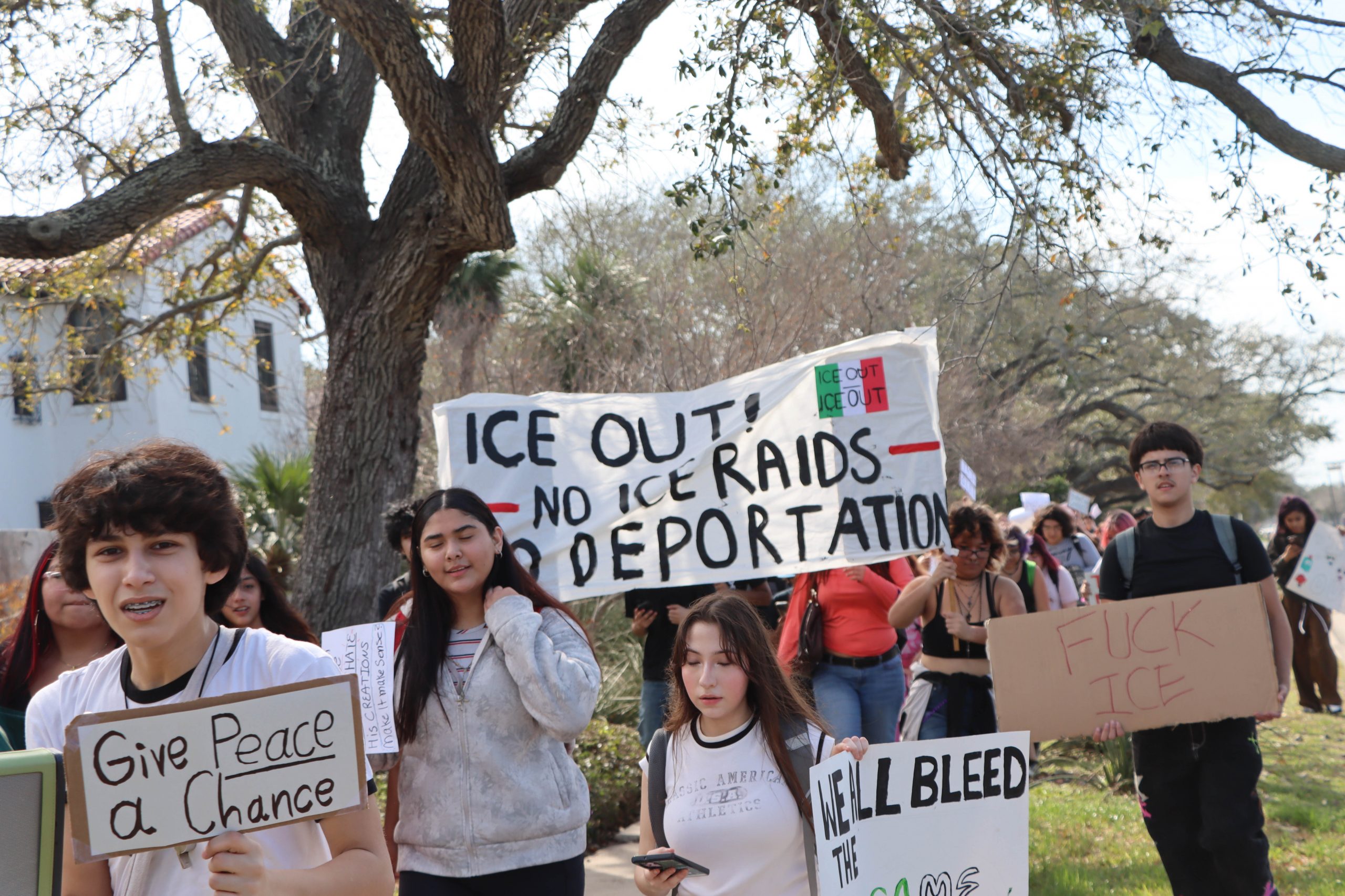 Hundreds of Corpus Christi Independent School District students walked out of class Thursday afternoon to protest the continuing ICE presence in the city.