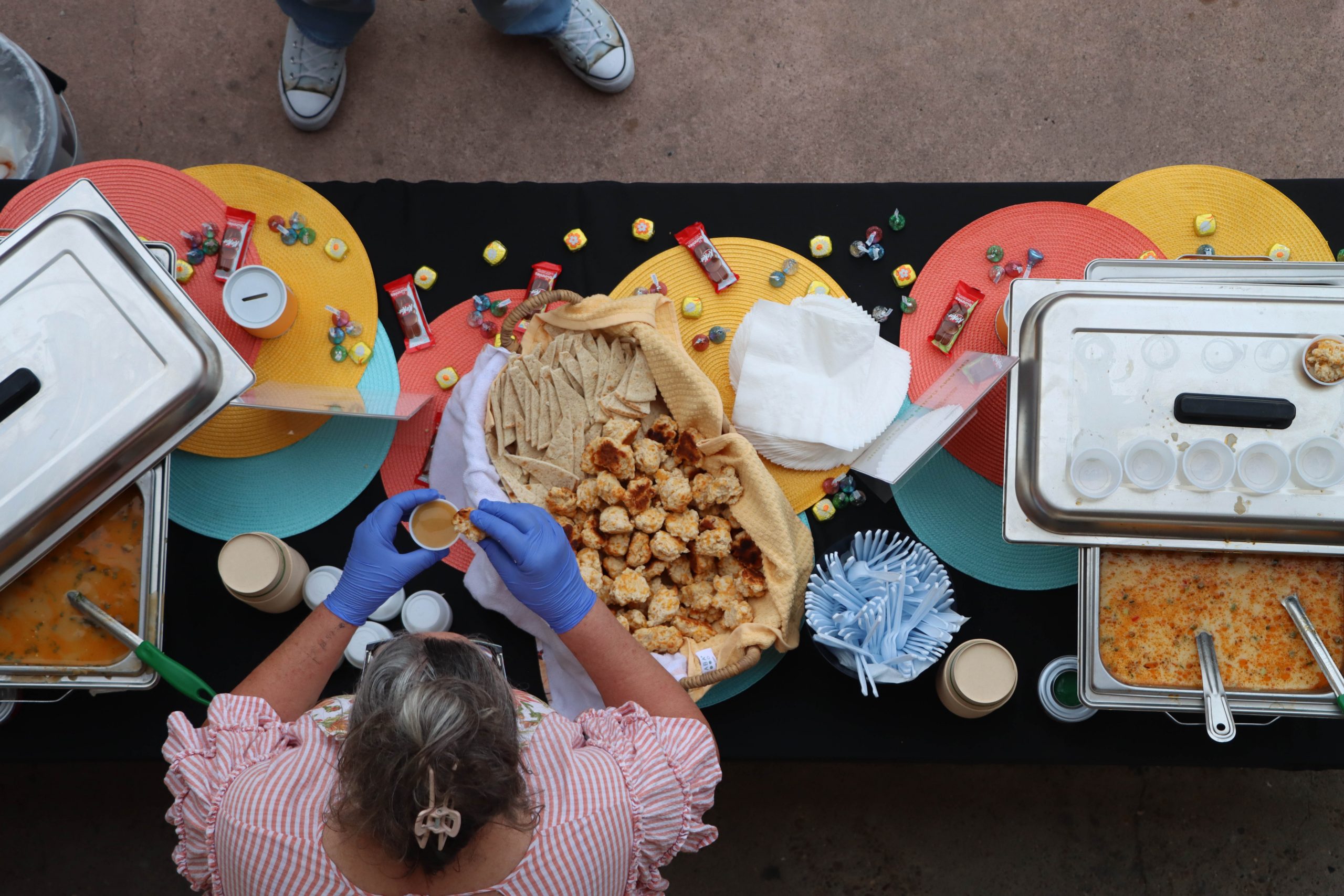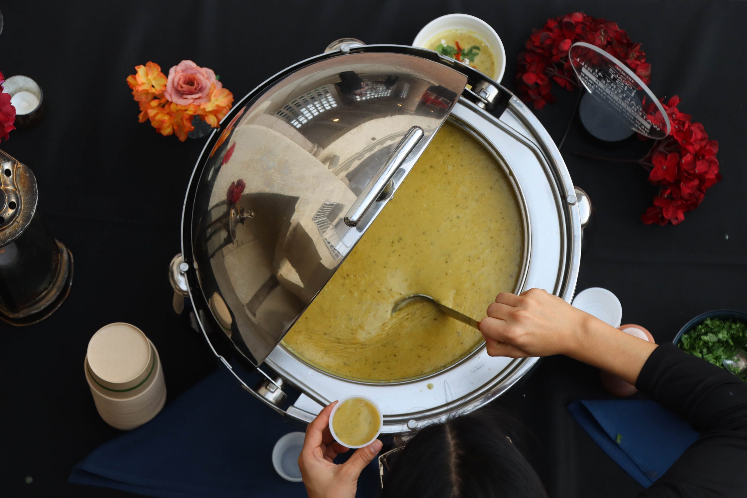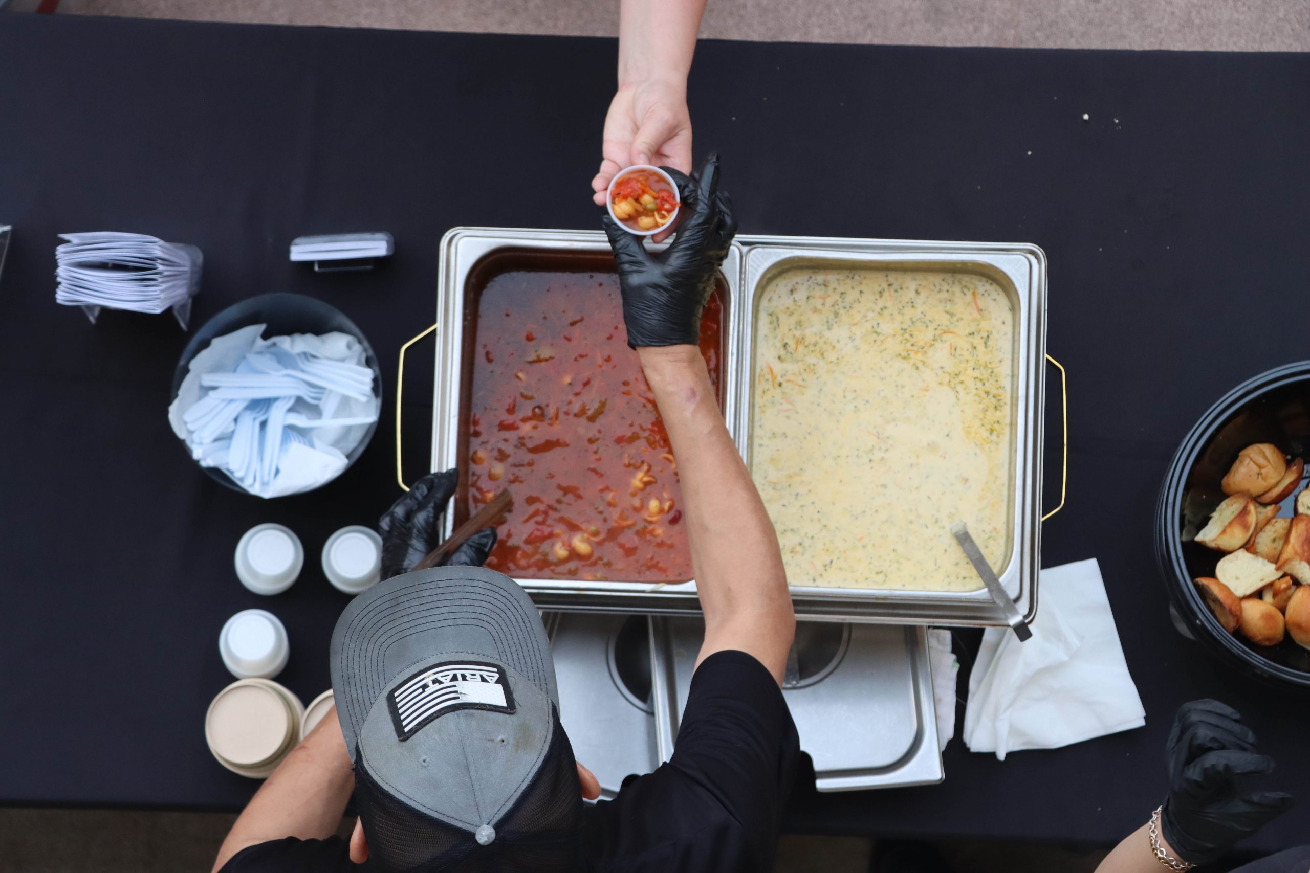“I’m here to raise money for the food bank and art center,” said Viviana Flores, the social services lead for the food bank. “I also work and do social services at the food bank, but I did volunteer for today to help hand out soup.”